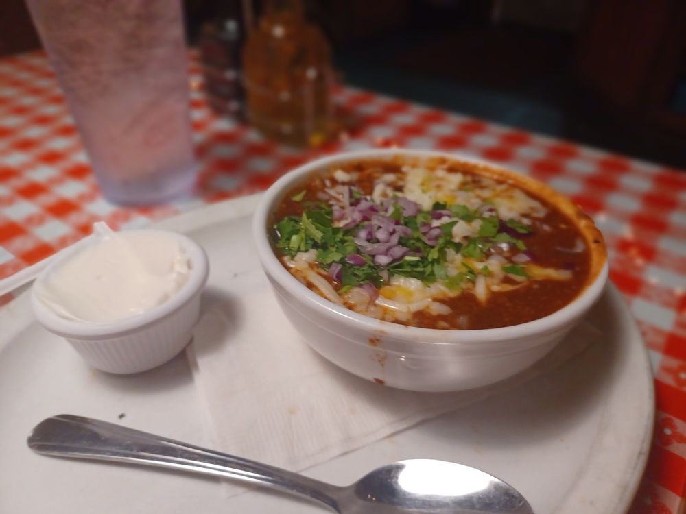 Chili, bell pepper, onion & cheese